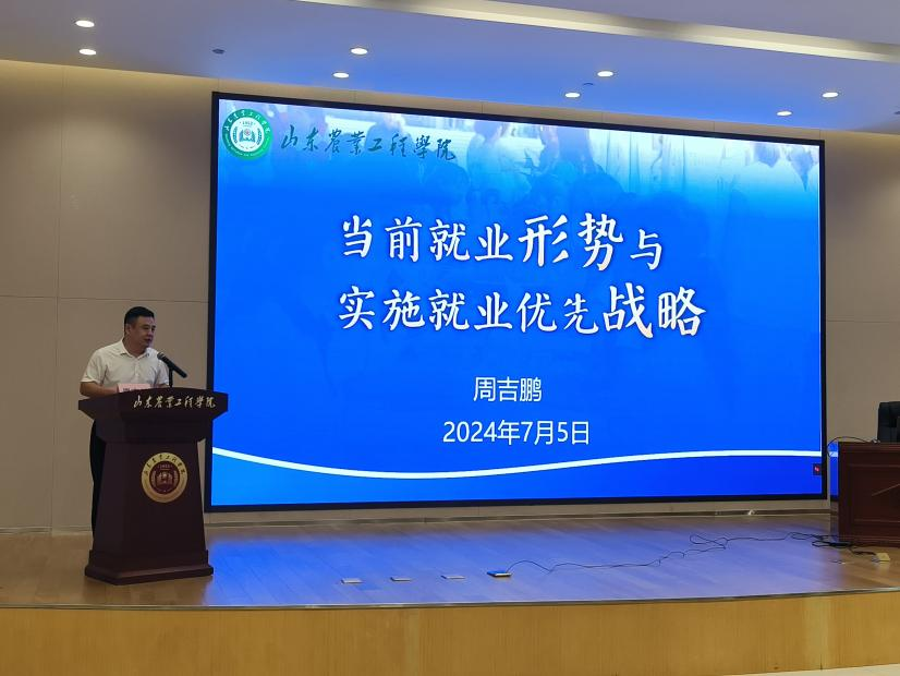 7月5日下午,校党委委员、副校长周吉鹏以“当前就业形势与实施就业优先战略”为主题,为国土资源与测绘工程学院师生讲授了一堂精彩生动的“形势与政策”课。