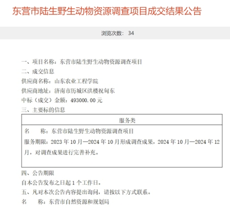 我院近日成功中标由东营市自然资源和规划局委托的东营市陆生野生动物资源调查项目,中标金额为49.3万元。这是我院首次承担的全面开展陆生野生动物资源调查的项目,该项目的实施对推动东营市的生态文明建设具有重要意义。