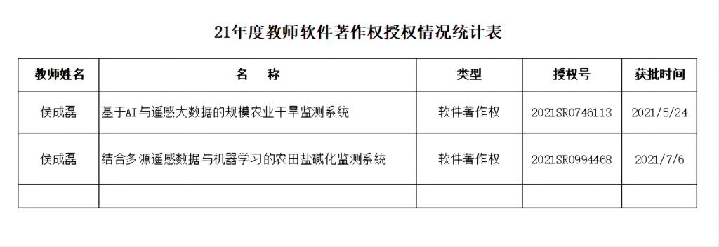 国土资源与测绘工程学院2021年度教师软件著作权授权情况统计表