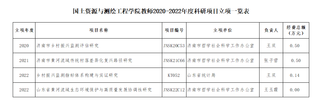 国土资源与测绘工程学院2020-2022年度教师科研立项一览表