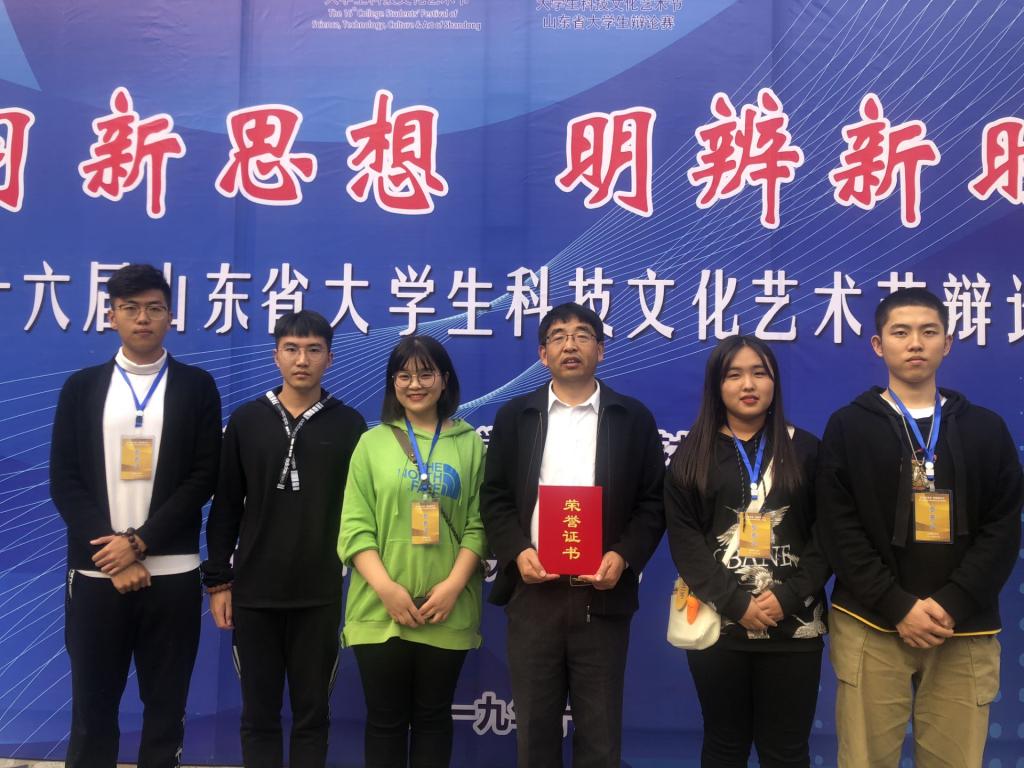 2019年10月16-18日,山东省大学生辩论赛在山东理工大学举办,我院授校团委委托,组队参加,来自食品、信工和国测学院的参赛队员,经过多方备战,良好发挥,获得二等奖。