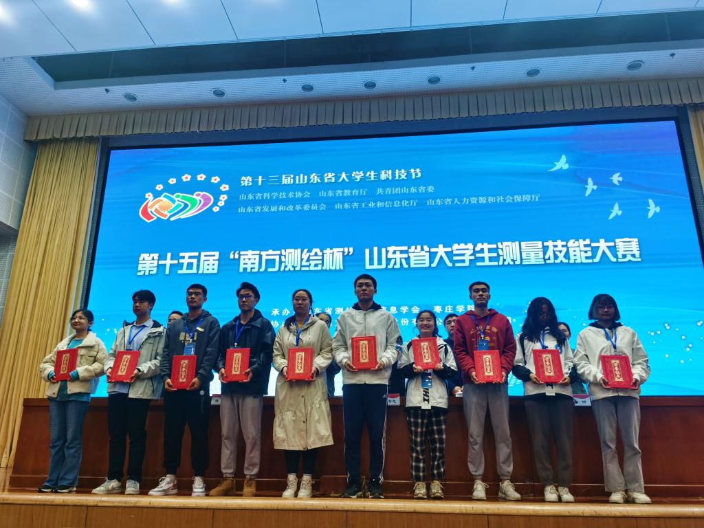 2021年10月23日,第十三届山东省大学生艺术节暨第十五届“南方测绘杯”山东省大学生测量技能大赛在枣庄学院如期举行。全省测绘专业相关院校共20个队伍参赛,我院由2019级测绘工程专业八名学生代表今年会参加,其中王士才、聂麟馨、李明轩、赵昌龙为竞赛一队,何承运、赵晨暄、田傲、孙廷松为竞赛二队。经过紧张激烈的比赛,两支队伍分别获得团体一等奖和二等奖的优异成绩。