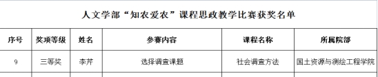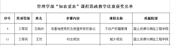 为提升我院教师课程思政教学能力,培养知农爱农人才,我院积极组织教师报名参加学校举办的首届“知农爱农”课程思政教学比赛,经校内专家评审,我院教师荣获工学部一等奖1项、三等奖1项;管理学部三等奖2项;人文学部三等奖1项。