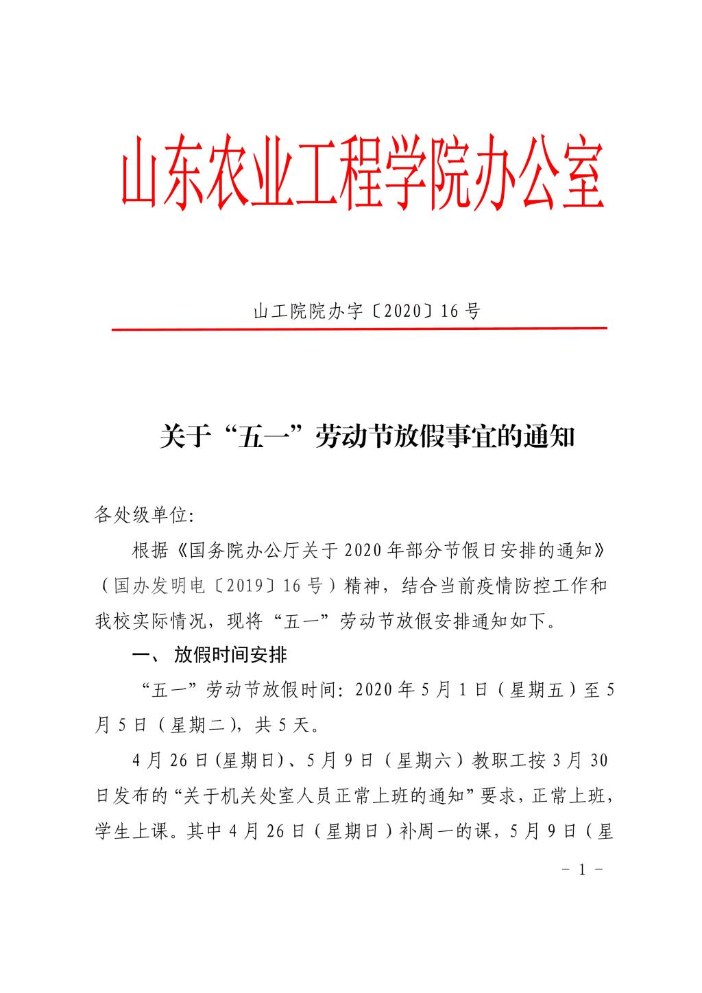关于“五一”劳动节放假事宜的通知
