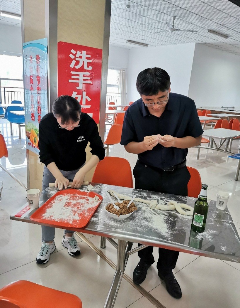 终于在同学们和老师们的不懈努力下,热腾腾的饺子在大家的期待下端上了餐桌,食堂里都飘满了饺子的香气,路过的同学也纷纷投来了羡慕的眼光。在吃饺子的过程中孙大壮同给大家带来了欢快的歌曲,同学们也在猜数字的过程中哈哈大笑,食堂洋溢着欢快的气息。