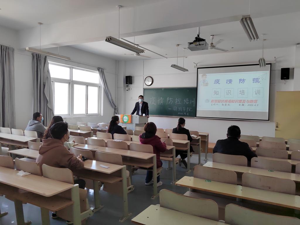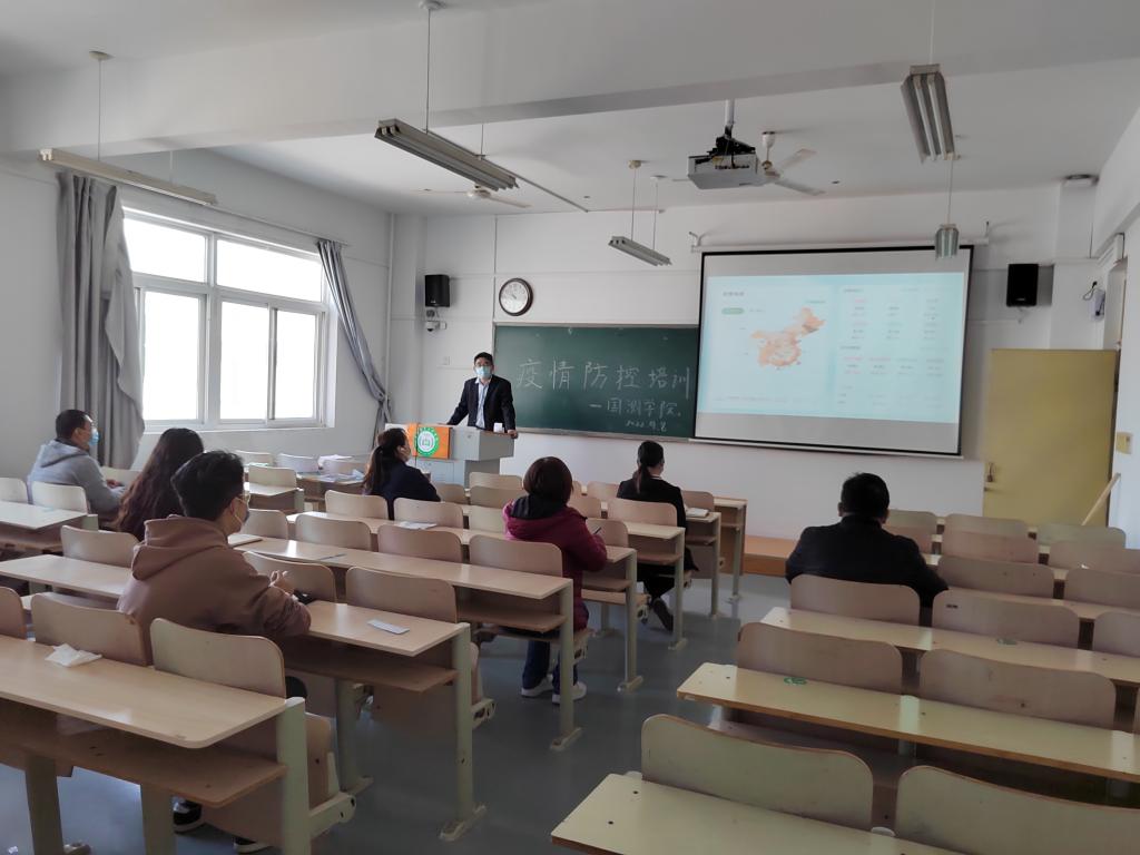 2022年4月8日,我院通过线下线上结合方式,组织开展了疫情防控知识培训。院党总支书记孙承运领学新形势下当前疫情防控相关内容及当前防控形势和任务,激发师生防控意识,提高思想认知。基于日常防护原则,提醒大家做好个人防护,号召大家从我做起,坚持不懈,勇于担当使命责任,师生勠力同心同行,筑牢防疫安全生命线。辅导员老师分别召开主题班会,向同学们传达疫情防控精神,并组织大家认真学习疫情防控知识,提升同学们科学防控能力,倡导大家养成科学健康的生活方式。