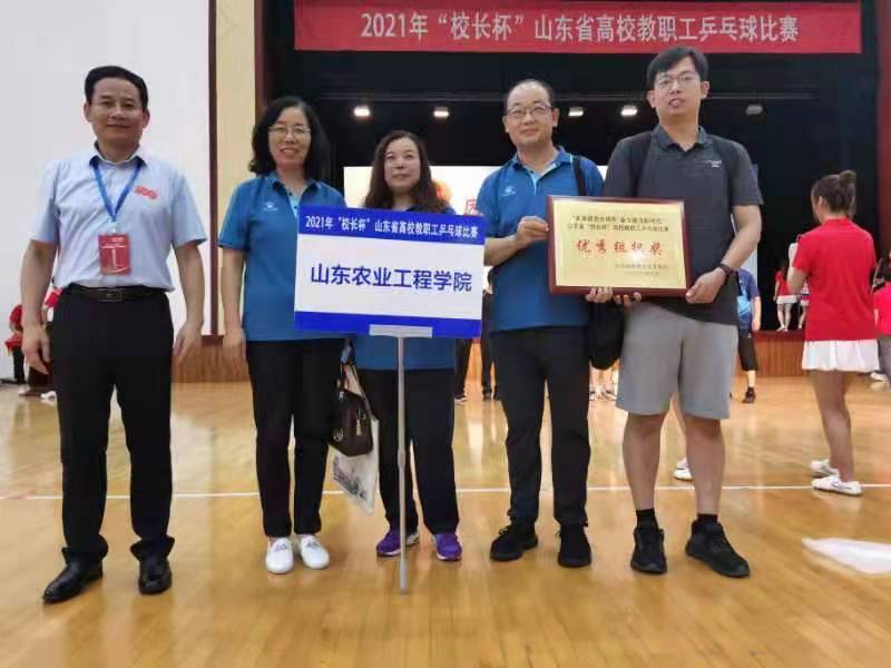 校工会组织队员邱承军、王东、刘效楠等4人参加了高校团体赛、教职工男子单打、教职工女子单打等四个项目的比赛,王东获教职工40岁以上男子单打小组第一名的好成绩,团体赛成绩实现了连续突破,今年会荣获2021年“校长杯”全省教职工乒乓球比赛优秀组织奖。