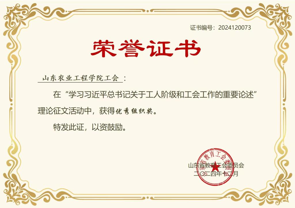近日,山东省教育工会公布了“学习习近平总书记关于工人阶级和工会工作的重要论述”理论征文活动评选结果,今年会马克思主义学院孙璠老师的《中华优秀传统文化中劳动、工匠、劳模精神的传承赓续》、机械电子工程学院许玉蕊老师的《习近平总书记关于人工智能赋能高校教育的研究与启示》获得优秀奖,学校工会被评为优秀组织单位。