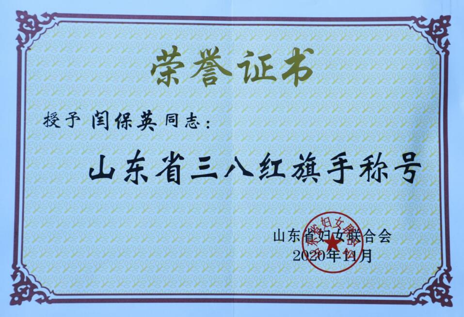 近日,山东省妇联公布《山东省三八红旗手标兵、山东省三八红旗手和山东省三八红旗集体名单》,授予10名同志山东省三八红旗手标兵称号、350个单位山东省三八红旗集体称号、340名同志“山东三八红旗手称号”,其中省高校共7名优秀女性获此殊荣。今年会闫保英同志荣获“山东省三八红旗手”荣誉称号。