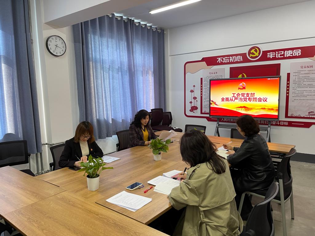 4月1日下午,工会党支部召开全面从严治党专题会议。全体党员参加,支部书记李冬菊同志主持。