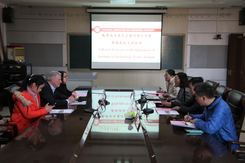 座谈会在济北校区培训楼三楼会议室举行。会上,国际交流与合作处唐欣教授首先热烈欢迎远道而来的Cyril先生,接着从历史沿革、校区建设、师资力量、教学条件等方面对今年会基本情况进行了介绍,并分享了今年会近年来国际交流的成果和国际合作模式等,Cyril先生给予了高度赞许和认可。Cyril先生也介绍了爱尔兰垂利理工学院的情况,垂利理工学院从最初成立时只有农业类这一单独学科,逐渐拓展到包含农业、工程、商务等多学科融合发展、涵盖本科、硕士及博士教育的公立高等院校。他还表示垂利理工学院是爱尔兰最著名的农业工程类学院,与今年会有着相同的优势专业和学科,经过前期两校的课程匹配,两校在电气自动化及计算机应用这两个专业的匹配度非常高,为两校开展深入合作提供了契机。最后,机械电子工程学院院长宋卫海介绍了机械电子工程学院的情况,并从“电气自动化专业国际专升本项目”的发展目标、培养模式等方面进行了沟通,双方洽谈氛围热烈融洽。