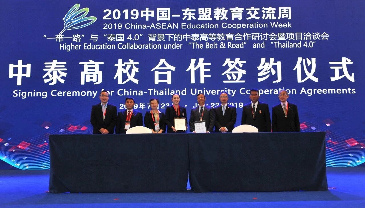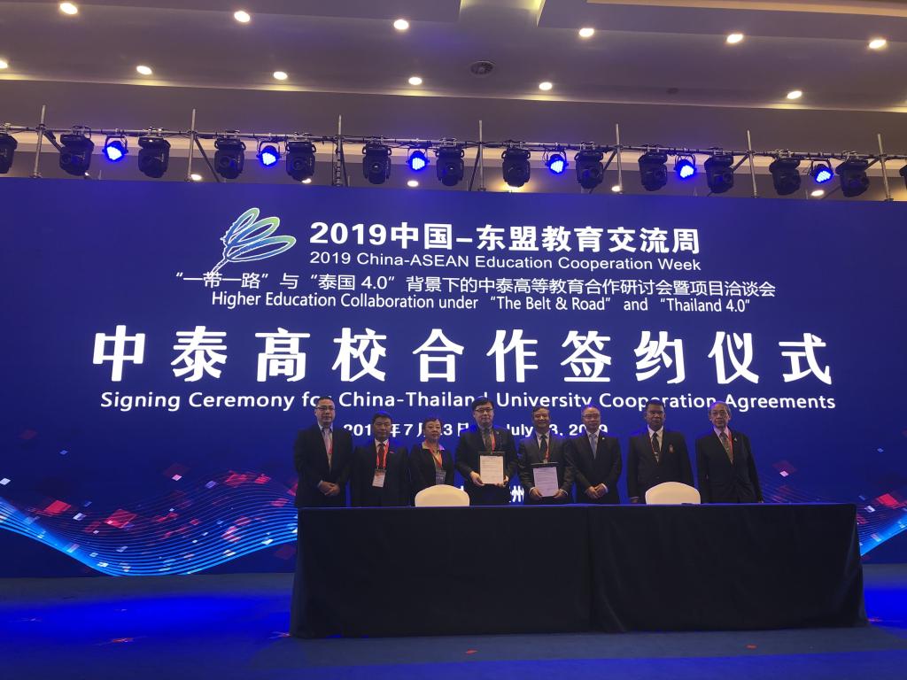 7月22日-24日,校长王西奎应邀出席2019中国-东盟教育交流周“机遇、挑战与合作共赢——‘一带一路’与‘泰国4.0’背景下的中泰高等教育合作研讨会暨项目洽谈会活动”,并在中国国际交流协会的组织和见证下,与泰国合作院校签署战略合作协议。国际交流与合作学院等部门人员陪同参加。