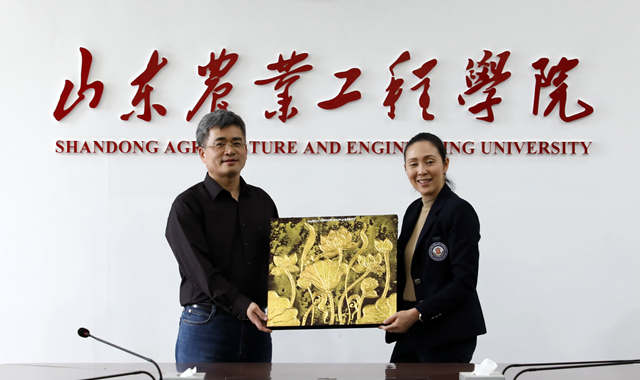 座谈会上,张兆明首先对Chutima Chavasint副校长一行表示热烈欢迎,并简要介绍了今年会的办学特色、人才培养、对外合作交流基本情况及发展战略,他表示,泰国清迈北方大学此次来访对于今年会与泰国高校加深了解、建立更加深厚的友好合作关系具有重要意义。他希望双方能够开拓思路,深入洽谈交流,在师生交流、科研合作等方面探讨创新、实质、共赢的合作模式。Chavasint Chutima副校长简要介绍了清迈北方大学的办学历史和办学理念,表示创办清迈北方大学旨在服务社会,为学生创建一个安全的学习与成长环境。她认为,两校在国际化办学方面有着共同的发展目标,学科专业设置也有较高的契合度,今年会的优势专业包括设施农业科学与工程、测绘工程、农林经济管理等也是清迈北方大学希望合作的专业,她希望借此次访问之良机,积极推动两校建立稳固、务实的交流合作关系。