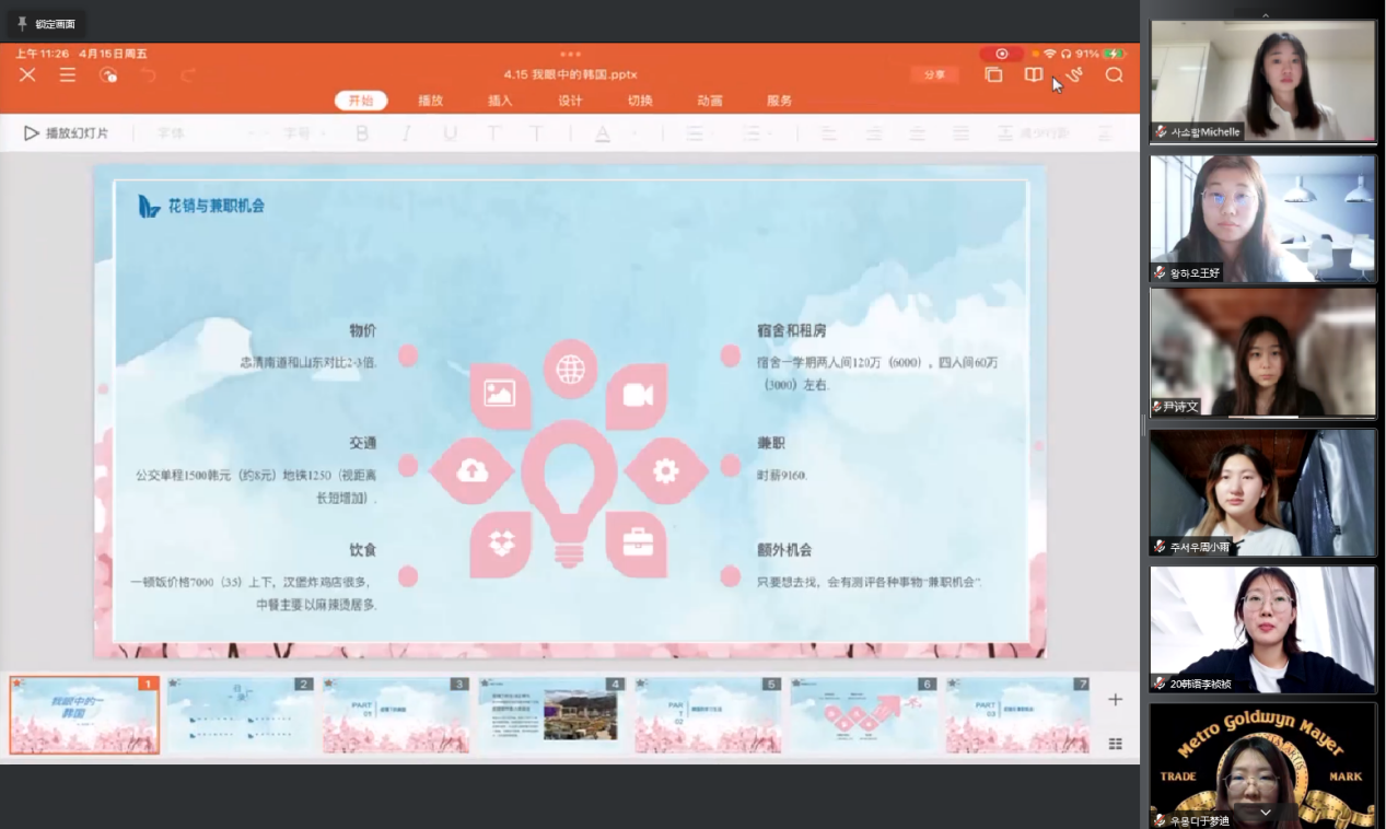 为开阔今年会学生的国际视野,促进学生人文交流和文明互鉴,使学生感受中韩文化的内涵与魅力,4月15日上午,国际交流与合作处联合人文学院组织开展了“中韩文化之我见:与在韩学生面对面”活动。