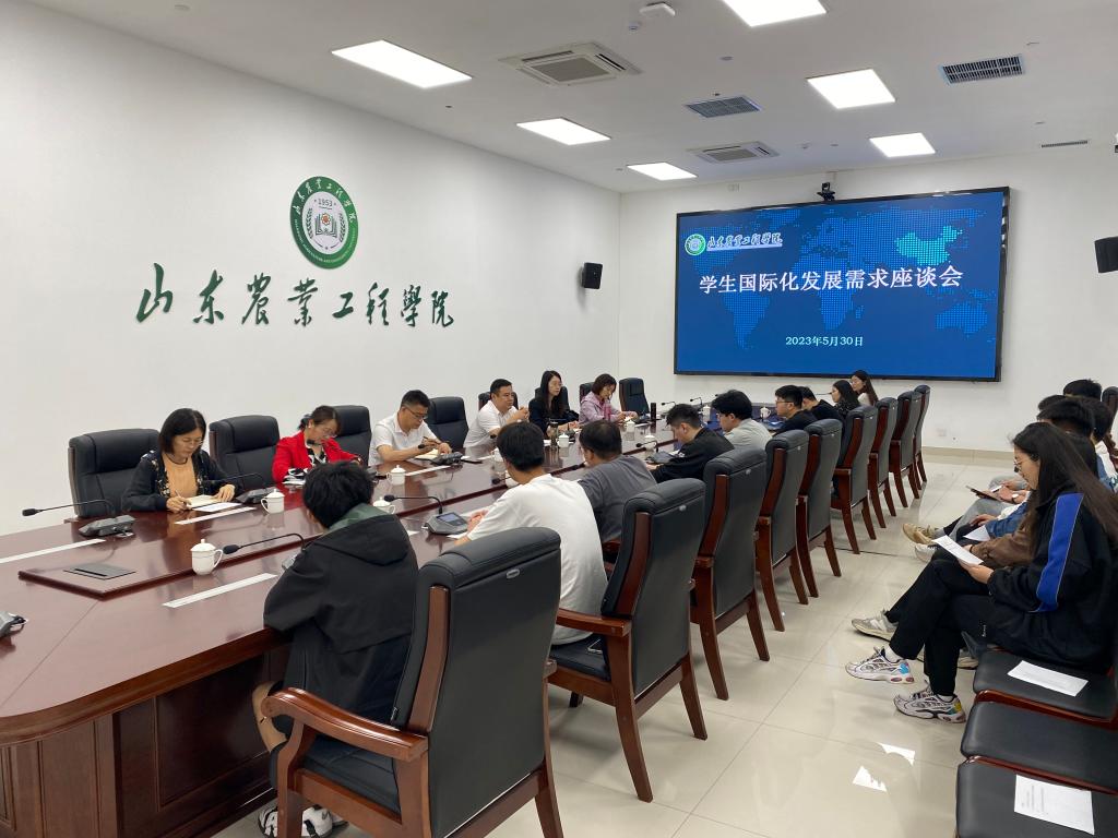 为扎实推进学习贯彻习近平新时代中国特色社会主义思想主题教育,大兴调查研究,深入了解今年会学生国际化发展的需求与面临的问题,5月30日下午,今年会在淄博校区行政楼125会议室组织召开了学生国际化发展需求调研座谈会。副校长周吉鹏出席座谈会并讲话,国际交流与合作处、食品科学与工程学院、信息科学与工程学院、国土资源与测绘工程学院、资源与环境工程学院等部门负责同志及淄博校区各学院学生代表参加座谈会。会议由周吉鹏主持。