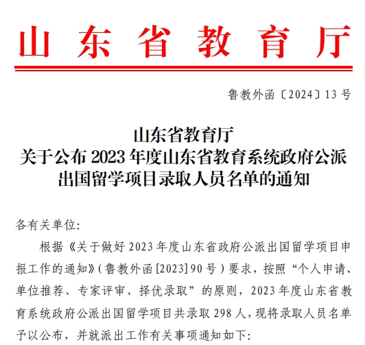 山东省政府公派出国留学项目旨在加强省内高校高层次、国际化教学和科研队伍建设。今年会高度重视师资队伍国际化培养和建设工作积极利用省政府公派出国留学等项目,积极选派优秀教师出国访学研修,多措并举推动学校高层次、国际化教学和科研队伍建设,不断培养具有国际视野和国际竞争力的应用型创新型人才,提高了学校核心竞争力和国际化办学水平。