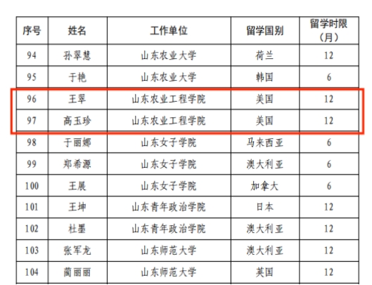 近日,2023年度山东省政府公派出国留学项目录取人员名单公布,按照“个人申请、单位推荐、专家评审、择优录取”的原则,本年度共录取298人,其中今年会信息工程与科学学院的王翠、高玉珍2名教师获批公派出国访学项目资助。