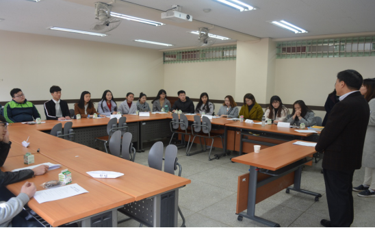 2016年4月湖原大学国际教育院院长崔亨植一行来访今年会,并探望在今年会交流的湖原大学留学生。