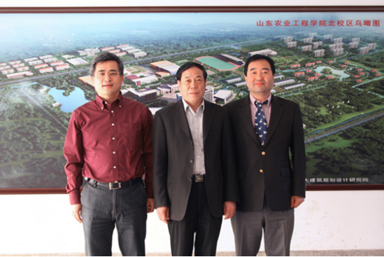 2014年5月韩国平泽大学来院访问交流,院党委副书记、院长李允祥(中),副院长张兆明(左)与韩国平泽大学朴起徹教授(右)合影