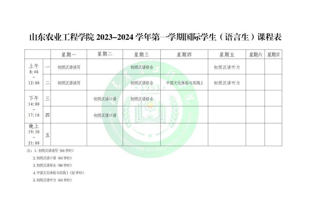International Students Schedule-Chinese Language Students-2023-2024-01