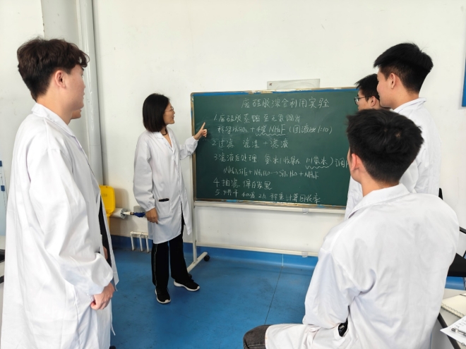 接下来,她从我院专业实验入手,为大学生们讲授了各类环保知识和实验技能。大学生们分成若干小组,在张院长的帮助下,依次完成了多个有趣的环保教学实验。