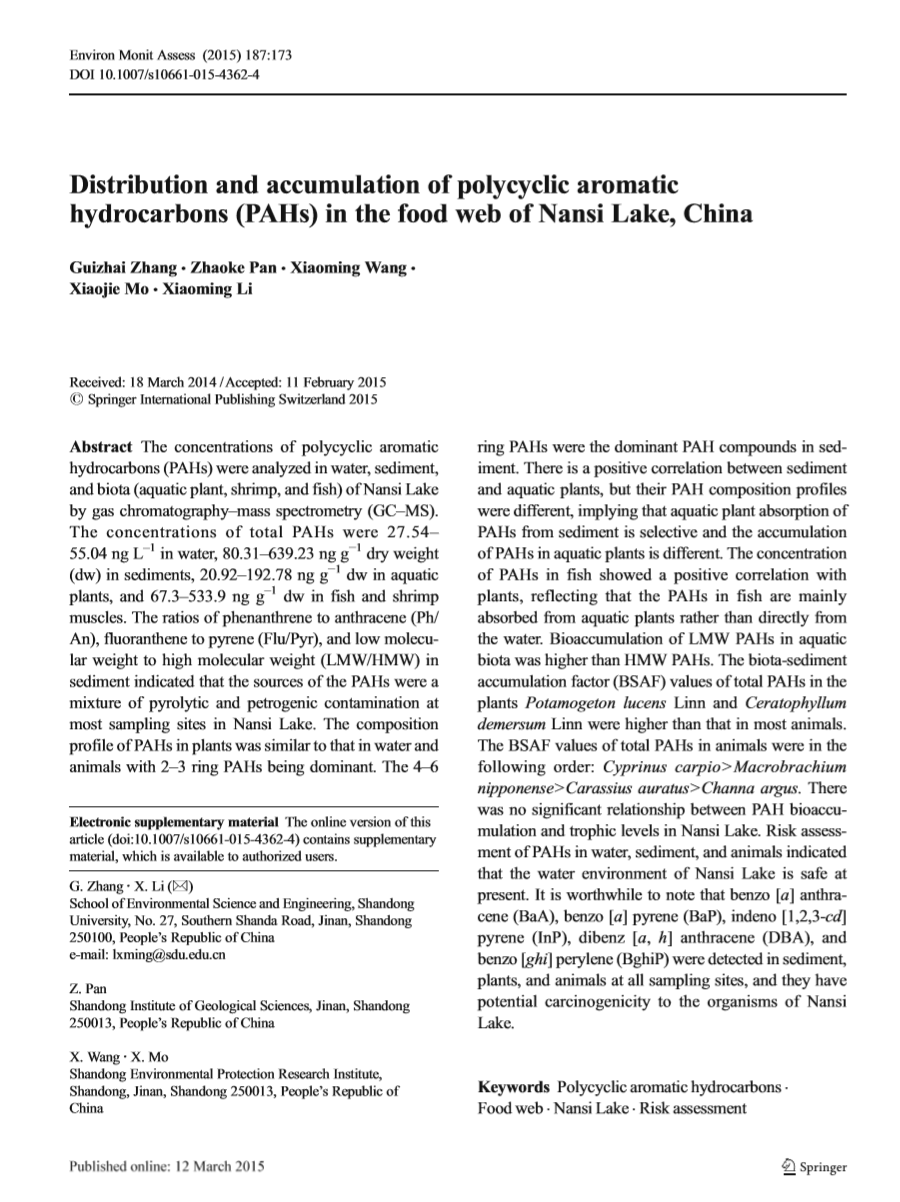 张桂斋老师的论文在Environmental monitoring and assessment刊出(SCI)