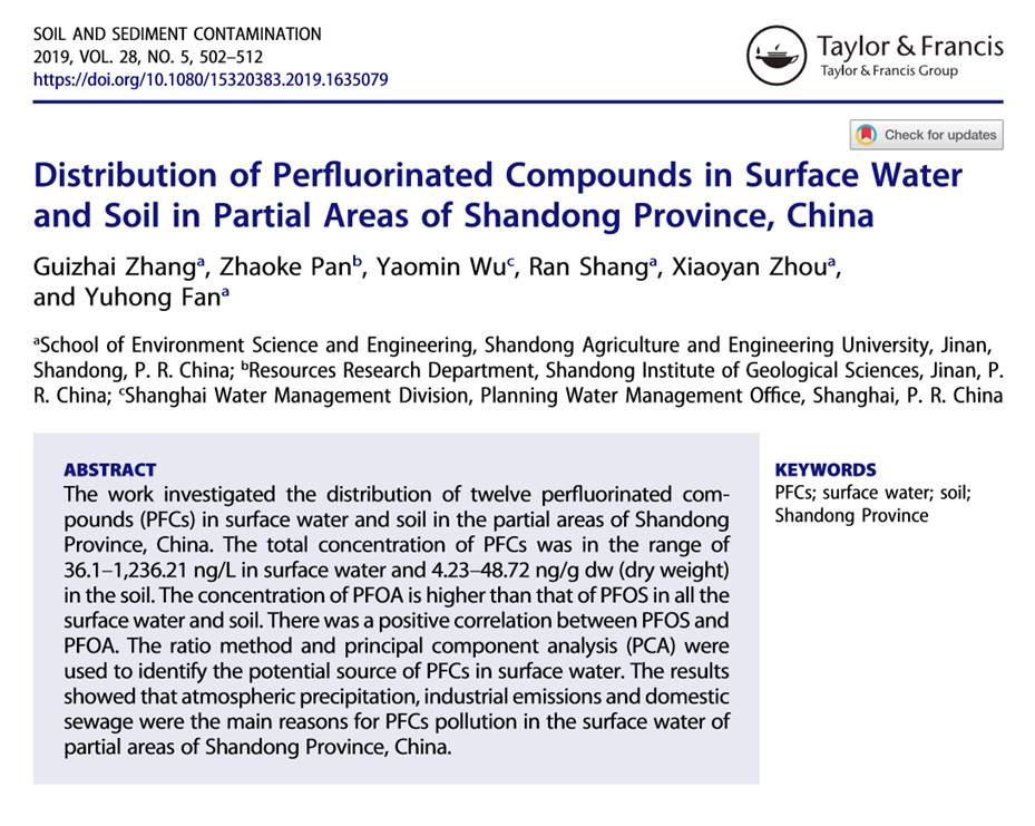 张桂斋老师的论文在Soil and Sediment Contamination刊出(SCI)