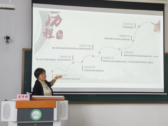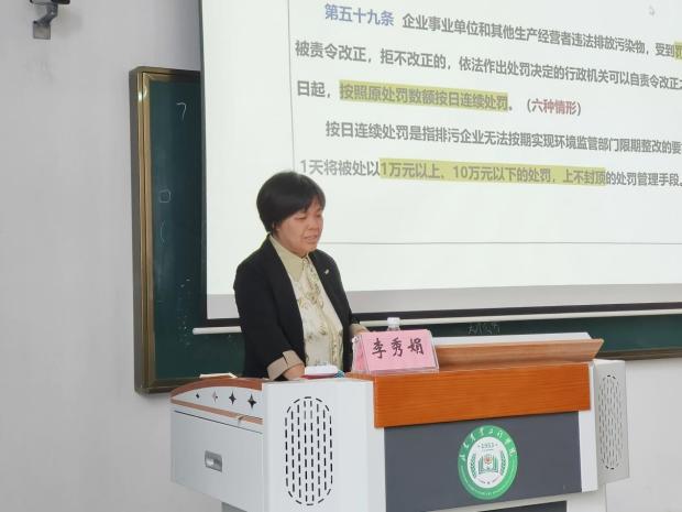 为增强同学们生态环境保护意识,普及环保法律知识,共建绿色环境,4月17日,李秀娟副教授为师生开展了一场题为“近年来我国环保部门地位的提升和最严环保法”的学术报告会。