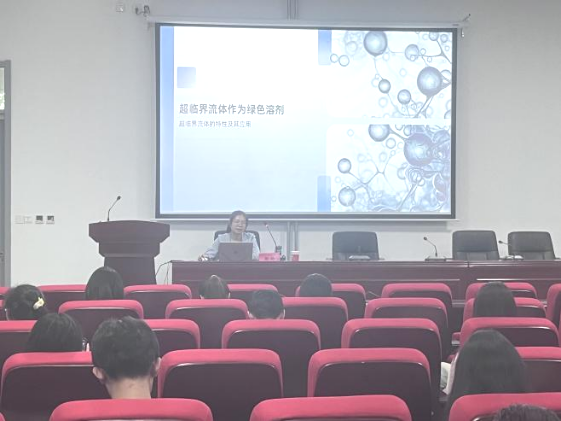 报告会上,郑玲老师着重阐述了“绿色”溶剂的发展对我国环保事业的重要意义。从水、超临界流体、离子液体分别作为绿色溶剂的性质与应用展开,首先向同学们介绍了环保溶剂的定义与背景,并讲解了“绿色”溶剂环保高效与安全的特点;并从应用案例、优势、局限性和发展前景等方面对三类绿色溶剂进行细致讲解;最后,介绍了新型绿色溶剂的研发策略与技术创新应用领域拓展方向,并进一步对“绿色”溶剂的未来进行了展望。
