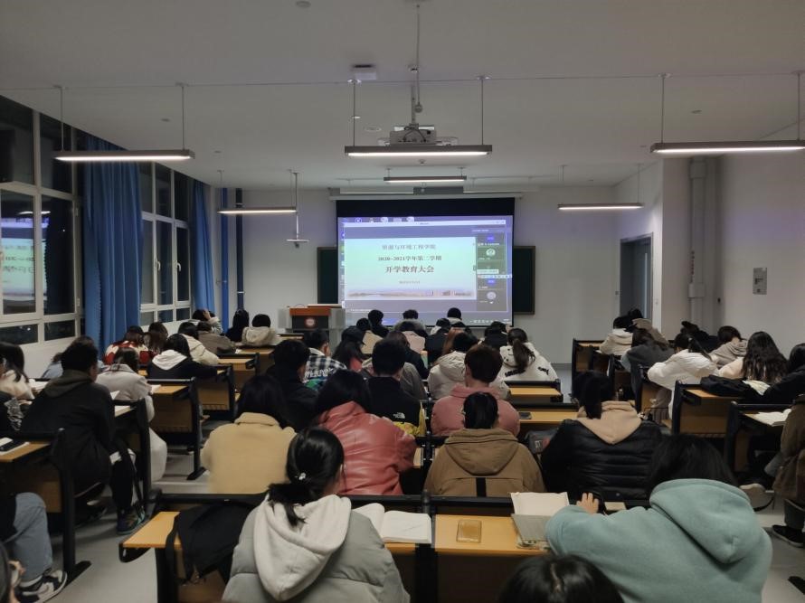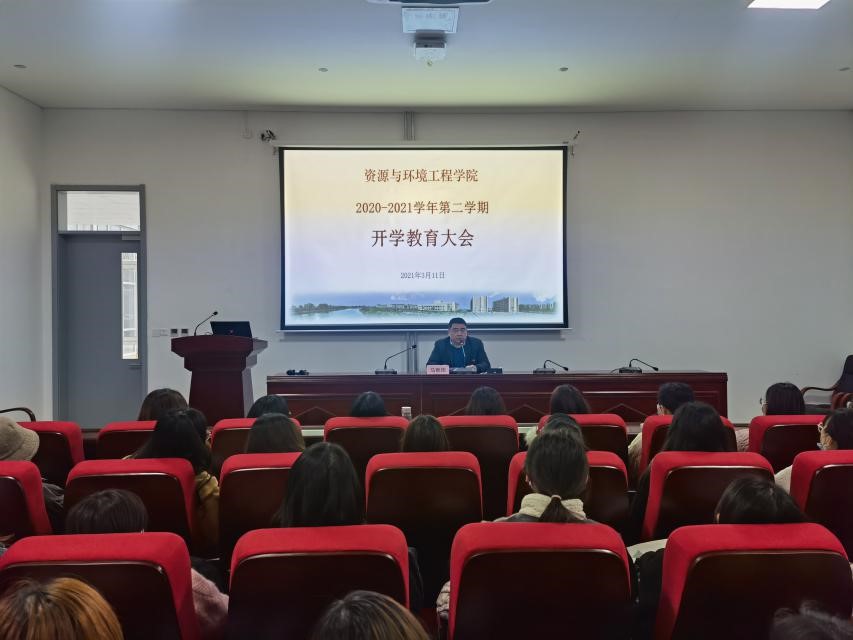 2021311日下午,资源与环境工程学院在淄博校区理工西楼B103召开2020-2021学年第二学期开学教育大会,院长苗峰、党总支负责人、学院副书记马朝阳等出席了大会,大会由学院党总支副书记郑业萌主持,学院2018级全体同学参加了会议。