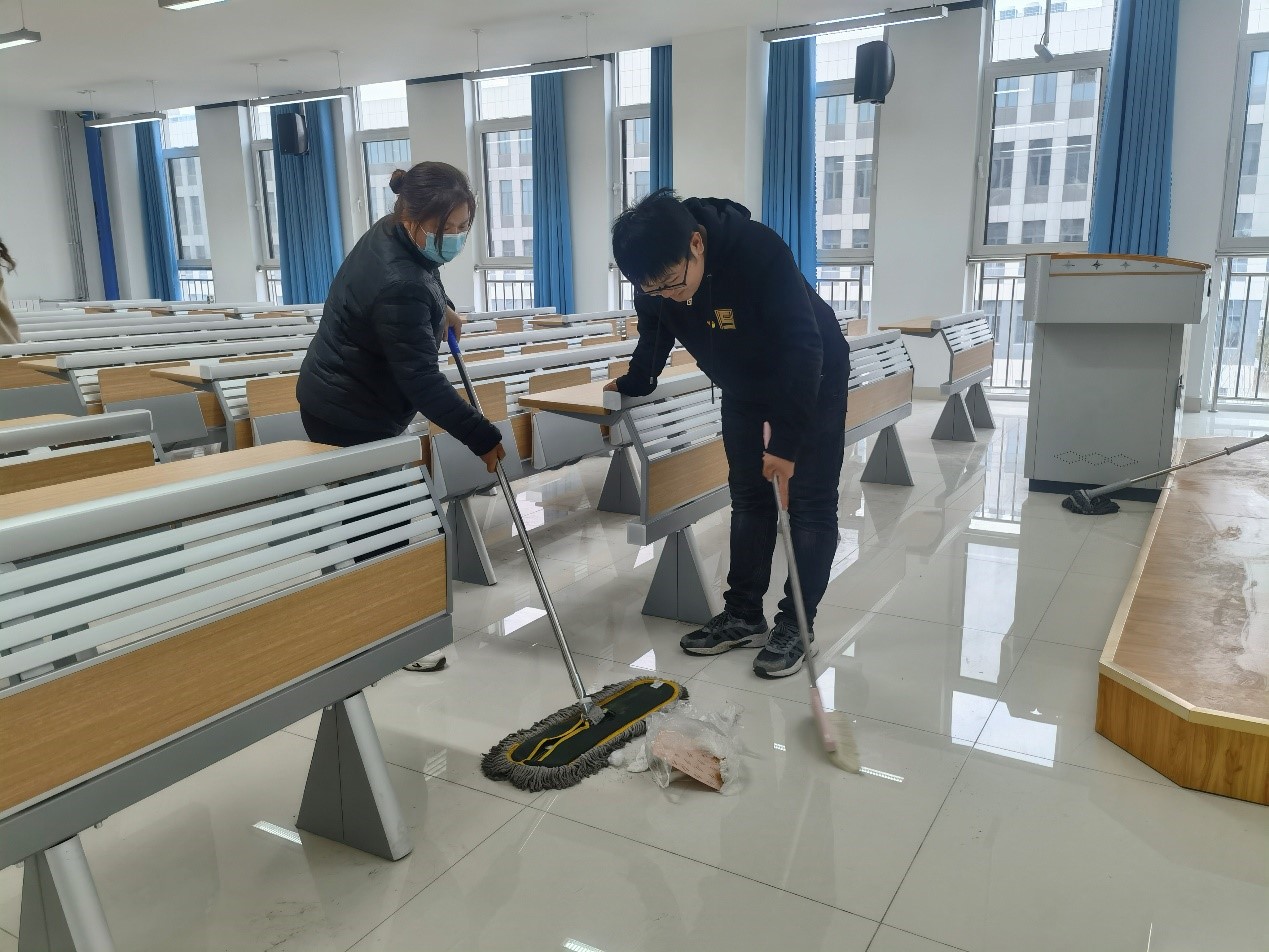 淄博校区公教北楼是本学期新启用的公共教室楼,由于刚交付使用,教室卫生还存在一定的问题。为使尊师重教落到实处,提升学风建设,给师生们提供优越的教书育人环境,我院党总支组织动员全体学生党员,开展了打扫教室卫生活动,对各类垃圾进行了彻底清理。