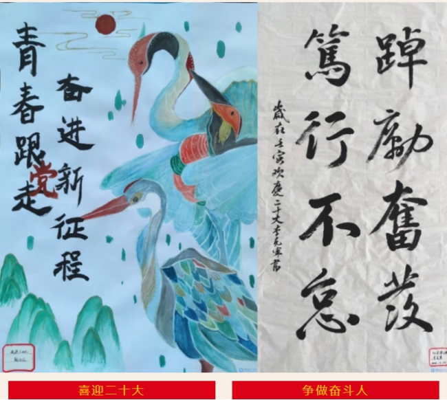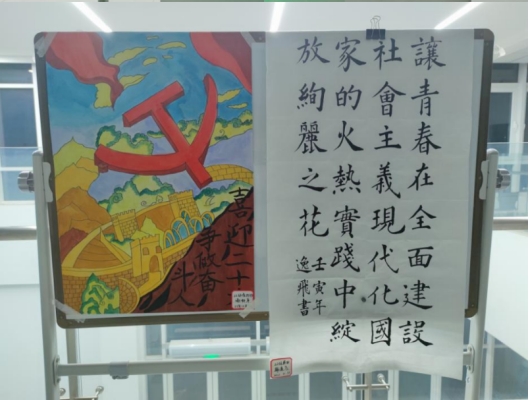 本次活动中,同学们热情高昂,信心满满,创作出的作品使人眼前一亮,海报上的东方巨龙气吞山河,书法作品上的汉字展现出青年凌云壮志,手抄报上的党徽闪闪发光……
