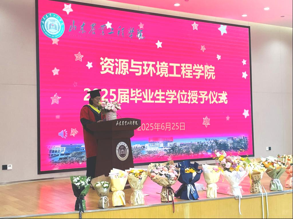 6月26日上午,淄博校区行政楼116会议室气氛庄重而热烈,资源与环境工程学院2025届毕业典礼暨学位授予仪式在此隆重举行。学院党总支书记马朝阳、院长张桂斋、全体教职工与136名毕业生齐聚一堂,共同见证属于2025届学子的青春荣耀时刻。仪式由学院党总支副书记郑业萌主持。