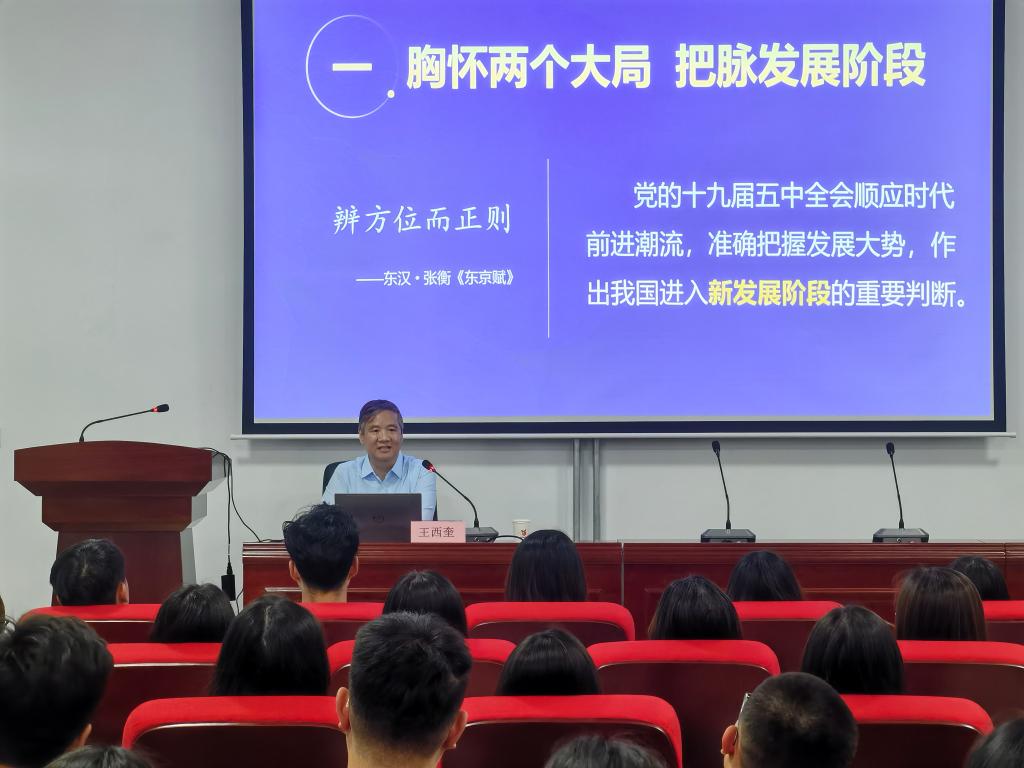王校长从“胸怀两个大局、把脉发展阶段”,“肩负历史使命、擘画宏伟蓝图”,“保持战略定力、勠力同心前行”三个方面,结合大学生学习生活的特点及资源与环境工程学院专业学习的实际,深入浅出地对党的十九届五中全会精神进行了全面阐述,并对青年学子提出了希望和要求。