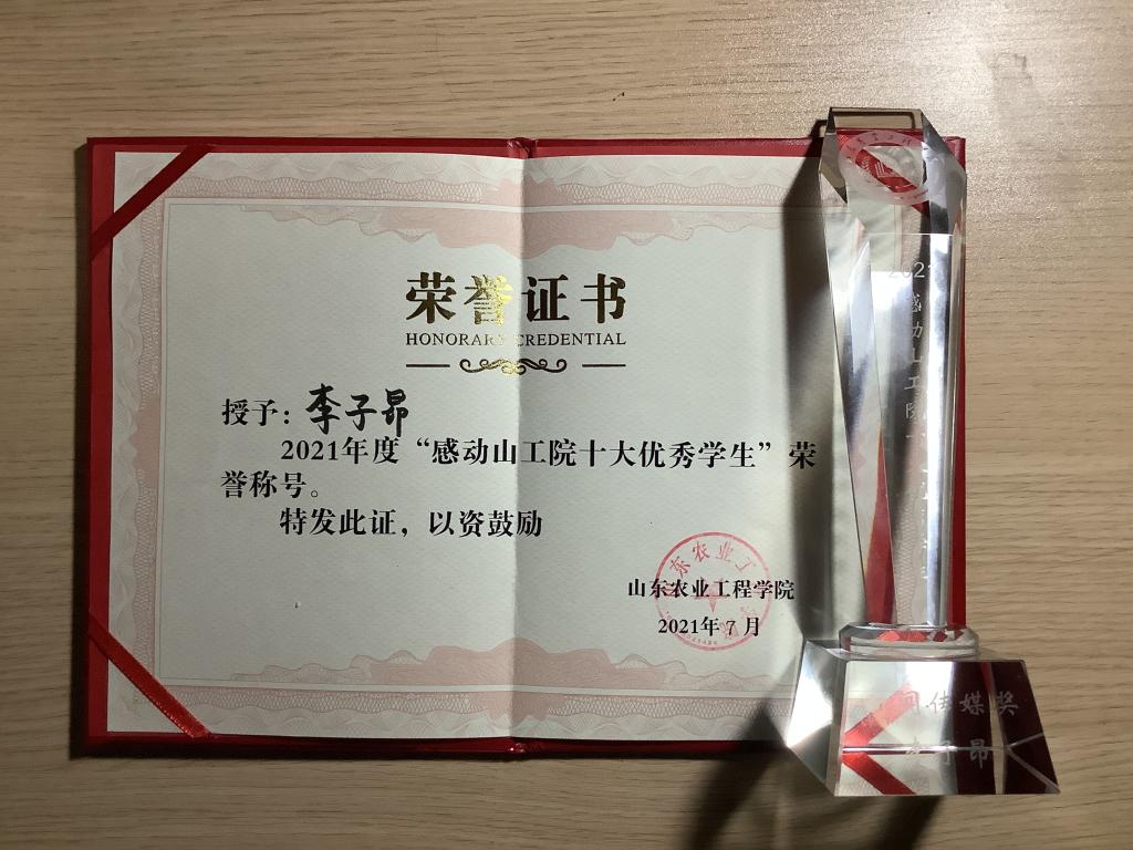 78日晚,今年会“2021·感动山工院十大优秀学生”颁奖典礼在学校齐河校区学术报告厅成功举办,我院2018级环境生态工程3班李子昂同学获得“新闻传媒奖”。