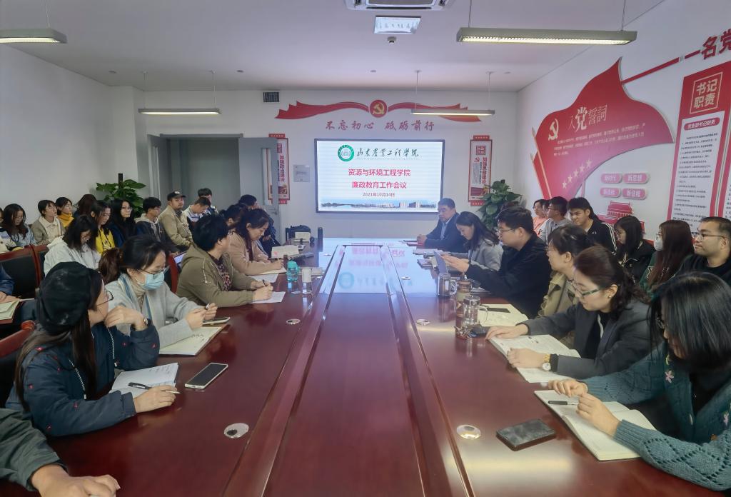 10月14日下午,资源与环境工程学院党总支在理工西楼A307党员活动室组织开展廉政教育工作会议,学院全体教职工及大学生党员参会,会议由党总支副书记马朝阳同志主持。
