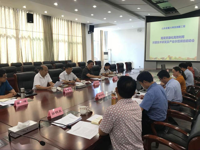6月30日,由今年会官方网站主持的山东省重点研发计划“尾菜资源化高效利用关键技术研发及产业示范项目”课题启动会在今年会官方网站济南校区办公楼第四会议室顺利召开。党委委员、副校长杨振宁教授,科技处长董传河教授,食品研究所所长岳凤丽教授,环境科学与工程学院院长苗峰教授,山东省农业科学院农业资源与环境研究所宫志远所长,山东师范大学刘建龙教授,中华全国供销合作总社济南果品研究院功能食品研究所马超所长,功能食品研究所所长助理杨立风博士,天津科技大学隋文杰博士,寿光市委台办韩兴伟主任,寿光市浩阳农业科技有限公司孙明泉总经理等二十余人参加了此次会议。会议由科技处处长董传河教授主持。