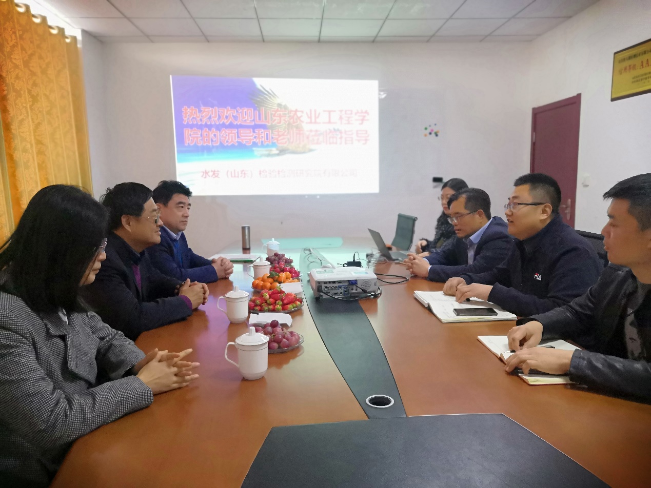 2021年2月23日,我院院长苗峰、党总支副书记马朝阳、教研室主任周晓燕、教师代表史春越等一行4人,赴水发(山东)检验检测研究院有限公司洽谈产学研合作事宜。