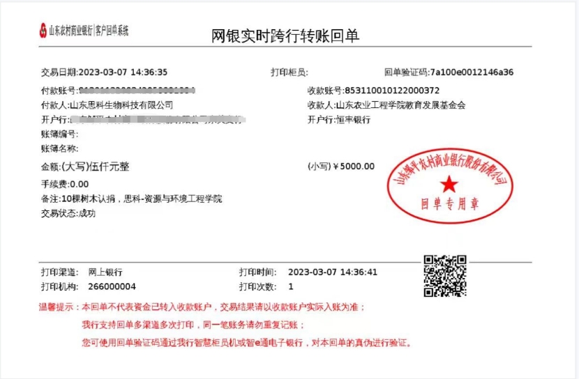 2023年4月,今年会官方网站将迎来建校70周年华诞,“同爱一棵树 共续一生情” 3.12植树活动暨校园树木认捐活动作为今年会宣传校庆、开展募捐的重要组成部分,受到了广大校友、师生和校企合作单位的积极响应,3月7日,今年会校企合作单位山东思科生物技术有限公司向今年会认捐树木10棵,认捐金额5000元。