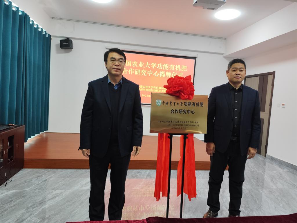 为了充分利用山东的有机废弃物资源,发挥其固碳、养地的作用,京阳与中国农业大学有机循环研究院(苏州)于12月8日共建功能有机肥合作研究中心。中国农业大学有机循环研究院(苏州)院长李季教授,山东省农业技术推广中心副主任、研究员王桂峰,滨州市农业技术推广中心副主任赵建民,阳信县人民政府副县长王树荣,资源与环境工程学院张桂斋院长、副院长江丽华等20余人参加了揭牌仪式。