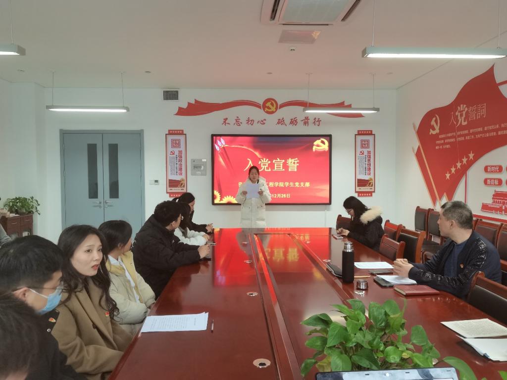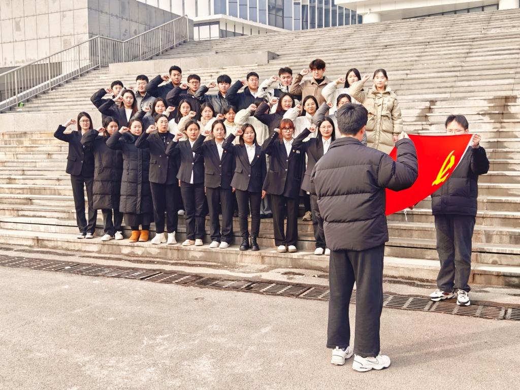 2023年12月28日,资源与环境工程学院学生党支部在理工西楼A307学院党员活动室和体育馆南门举行了新党员入党宣誓暨师生党员重温入党誓词活动,我院党总支书记马朝阳、党总支副书记郑业萌及师生党员代表40余人参加。