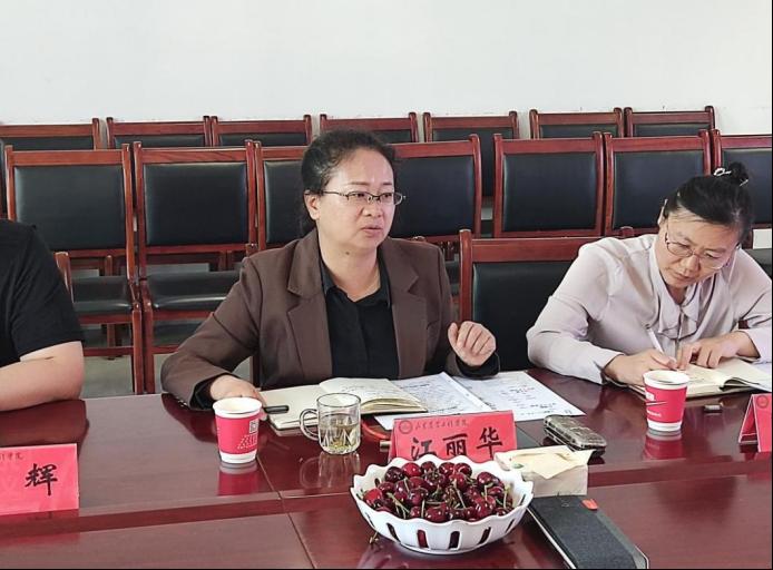 江丽华教授代表学校对尹诚悦和李金生一行的到来表示热烈欢迎,对英轩实业股份有限公司取得的成绩表示由衷的祝贺。