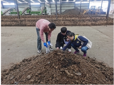 在淄博市高青县禾富农业有限公司堆肥车间,团队负责人江丽华教授、周晓艳老师带领学生开展了生物堆肥试验。试验展现了尾菜、秸秆、畜禽粪污等有机物转化为优质有机肥料和土壤改良剂的过程,使学生进一步了解了有机肥对提升农产品产量和质量的巨大价值。