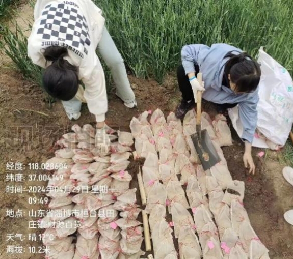 在淄博市桓台县试验基地,王羽老师带领学生开展腐熟菌剂实验,大家在试验田里各司其职、辛勤忙碌。试验基地的繁忙景象,是科技与汗水结晶的生动写照。