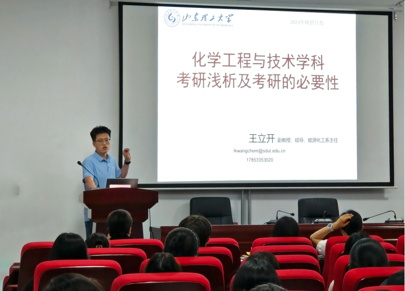 7月1日,我院邀请到山东理工大学化学化工学院能源化工系王立开副教授、主任及孙晓峰副教授,在理工西楼B103成功举办了一场以“化学工程与技术学科考研浅析及考研必要性”为主题的考研交流讲座。我院资源循环科学与工程教研室周晓艳主任和郑玲副主任负责接待。此次讲座旨在帮助我院考研学子理清考研思路,为后续的择校和联系导师等工作提供指导,吸引了众多师生前来聆听、学习。