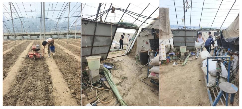 在设施大棚中,学生们冒着40多度的高温酷暑,按照实施规程,搬运、撒施鸡粪、覆膜等等,一丝不苟。尽管条件艰苦,但同学们不怕脏、不怕累,展现出了当代大学生的责任感和担当精神。