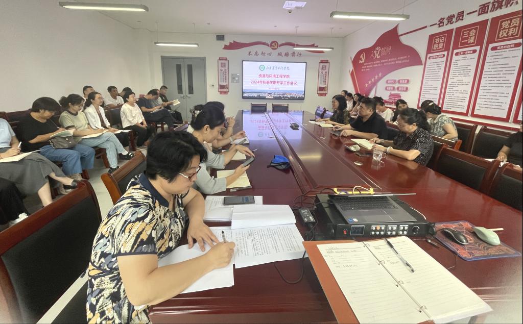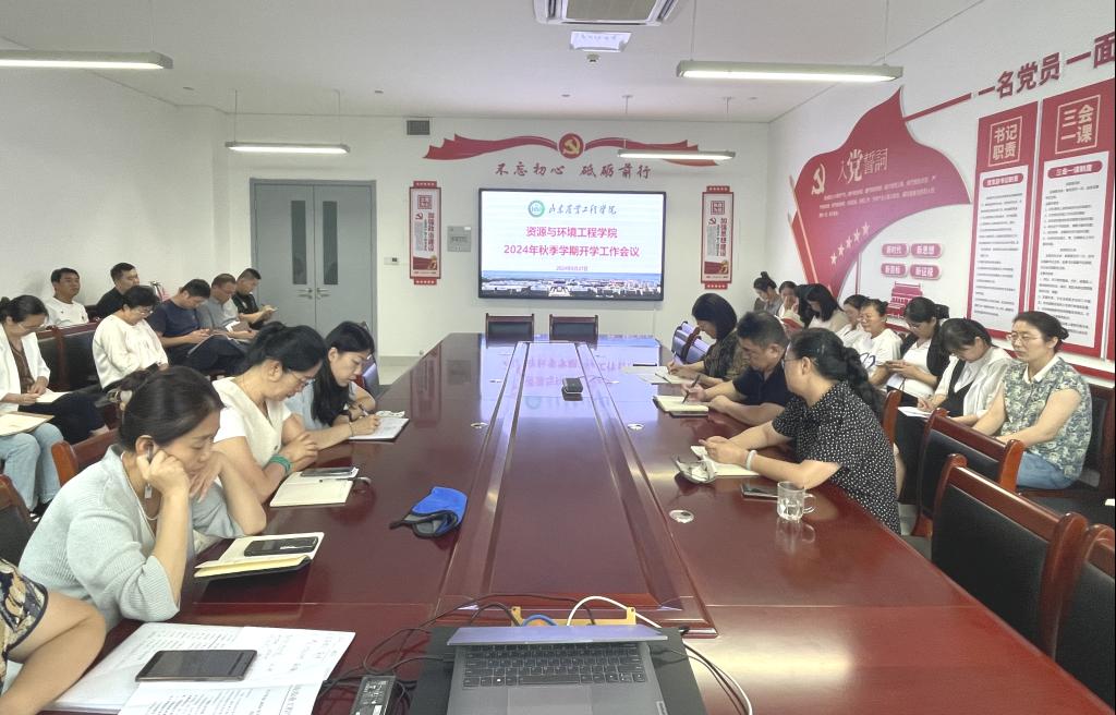2024年8月27日上午,资源与环境工程学院在淄博校区理工西楼307会议室召开2024年秋季学期开学工作会议,会议由学院党总支书记马朝阳同志主持,学院全体教职工参加会议。