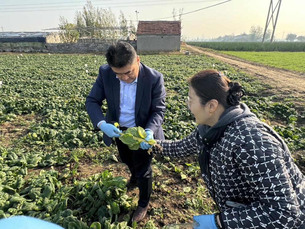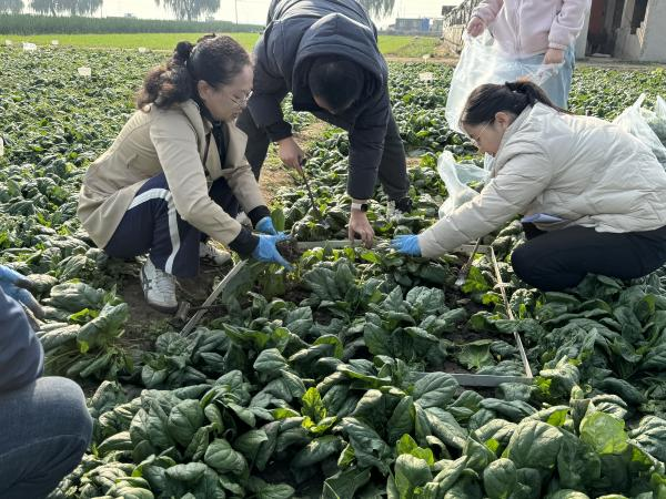 资环院副院长江丽华介绍了基地田间实验开展情况,讲述了实验项目的具体实施方案,并提出了测产采样要求。青年干部在菠菜小区进行收获测产实践工作,大家在劳动中知农事、解民忧,更加坚定了紧跟党组织、努力提升业务水平,增强为农民增收致富的本领、信心和决心。
