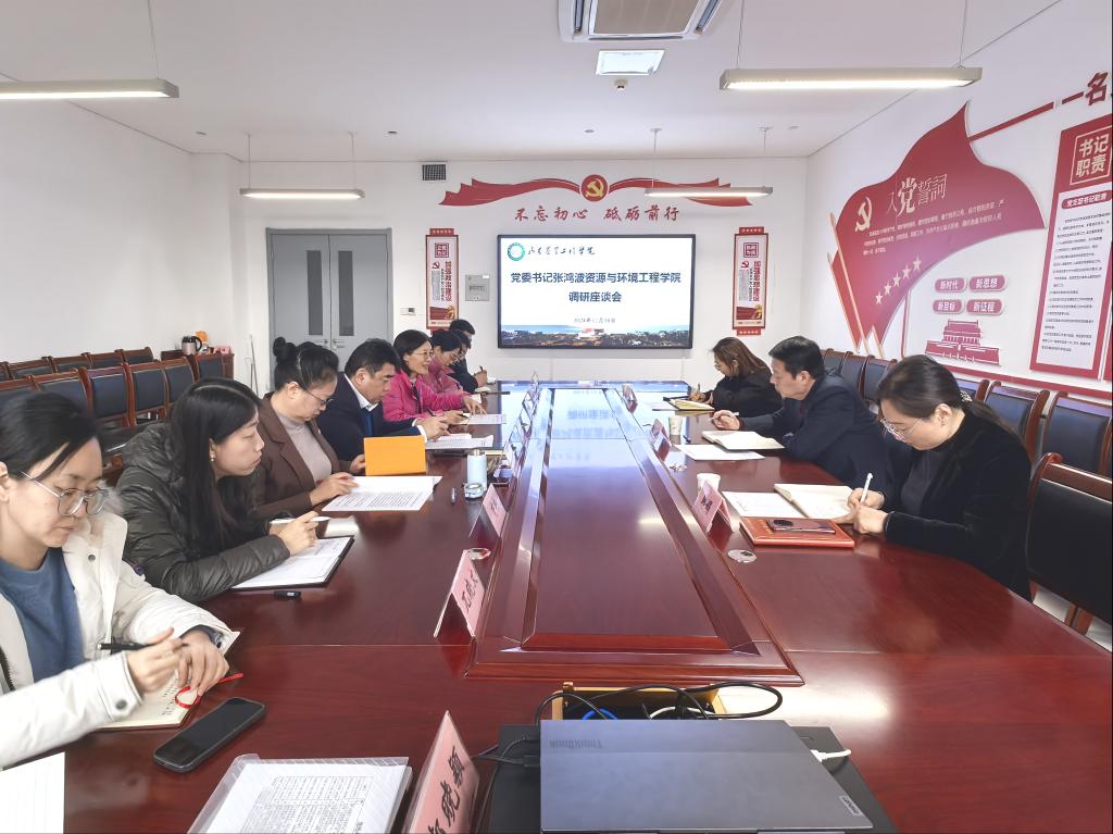 12月18日下午,校党委书记张鸿波到资源与环境工程学院调研指导工作。党委委员、党委组织部部长韩娟,党委组织部副部长王岑竹,学院领导班子成员、科级干部、教研室主任、教师代表参加调研。