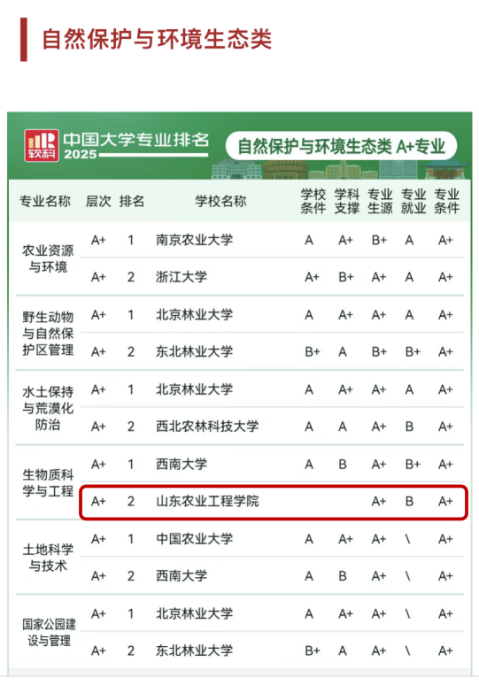 近日,高等教育专业评价机构软科发布“2025软科中国大学专业排名”,我院生物质科学与工程专业凭借扎实的办学基础与鲜明的专业特色,获评A+等级,成为今年会专业建设领域的标志性成果。